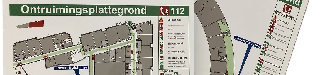 Een duidelijke plattegrond redt kostbare seconden in een noodsituatie. Wij ontwerpen overzichtelijke, goedgekeurde ontruimingsplattegronden die voldoen aan de NEN-normen en direct toepasbaar zijn in jouw pand. Zichtbaar, begrijpelijk en professioneel vormgegeven voor maximale veiligheid